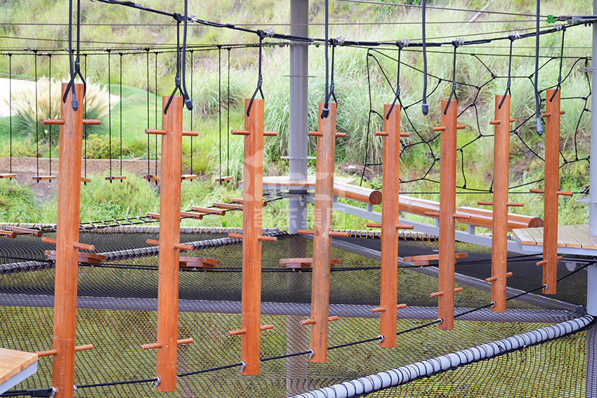 二層設計為一個繩網體驗層+16個拓展步道,輕極限體驗,挑戰難度適中,可以讓挑戰者更好的適應,先培養信心,以便完成更高一層的挑戰。