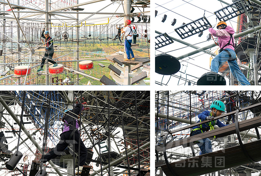 奇樂以游客體驗、文化體驗方面出發,團交、極限運動及周末休閑等功能點來創新開發匯集拓展、探險、滑道、滑索、蹦極、攀巖、爬網、高空秋千等218種不同的運動體驗項目。關卡式挑戰的設計,難易分區,每個人都能在這里找到適合自己的挑戰項目。