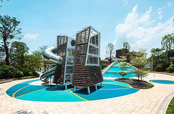 佛山云東海地區自古以來就水面彌漫百里,稱之“古云東海”。云東海高爾夫花園洛嘉兒童主題樂園以水作為核心元素進行發想,以創造五彩泡泡家園夢幻旅程為設計核心理念。設計師在這里用五彩泡泡的概念實現了大小朋友們的夢想,利用非動力兒童游樂設施的概念打造兒童游樂場,為孩子們提供可持續快樂!
