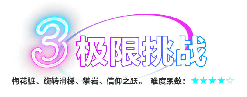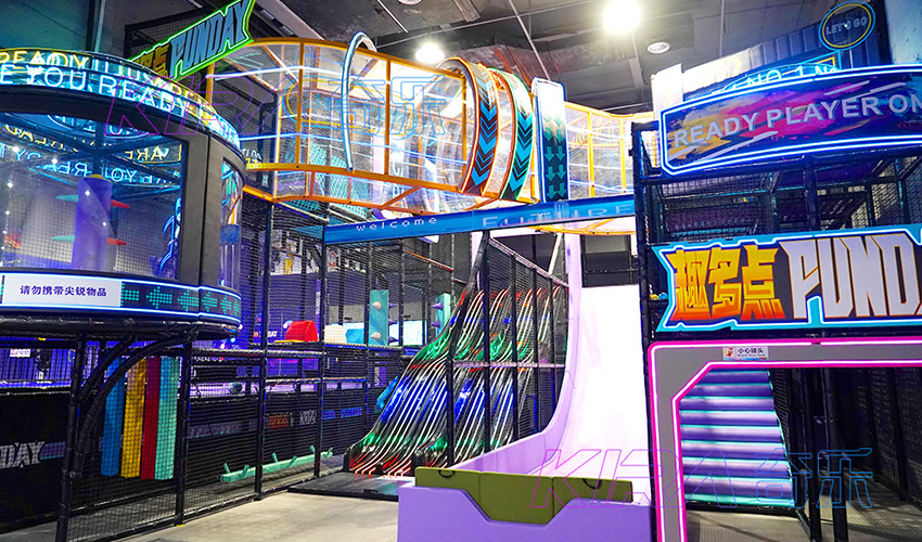 設(shè)計(jì)項(xiàng)目:蹦床、彈跳迷宮、攀巖、滑梯、拓展步道、VR戰(zhàn)車、360°自行車、體感游戲等。