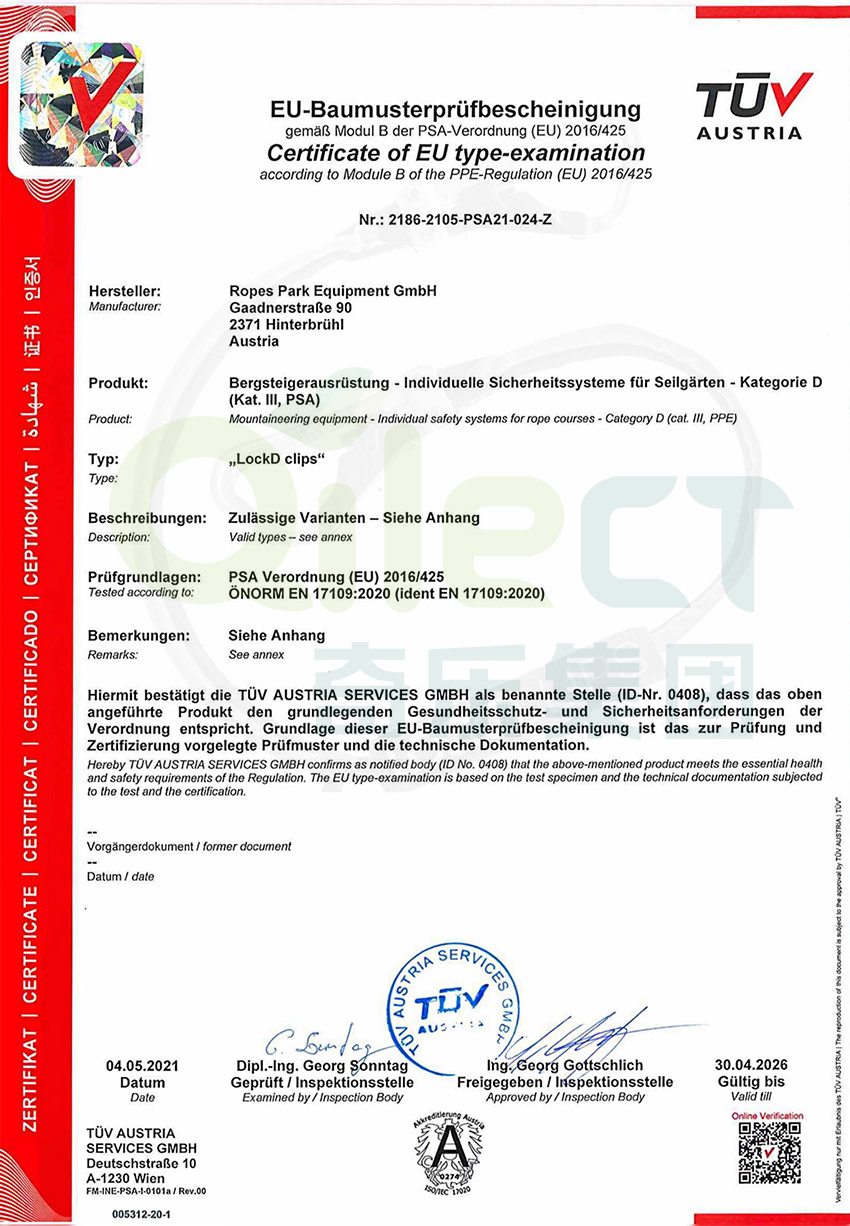 2、適配性強。可以與符合EN362(KatQ)的連接掛繩、符合EN361的安全帶或符合EN12277的攀爬安全帶一起使用,專門用于保護受過使用指導的個人免受在繩索路線上可能導致受傷的跌倒。