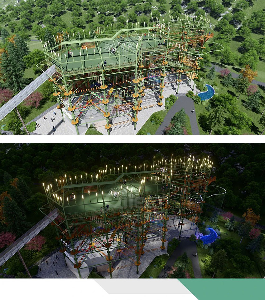 唯一性:世界單體最大戶外繩索探險塔,200+個游戲項目!