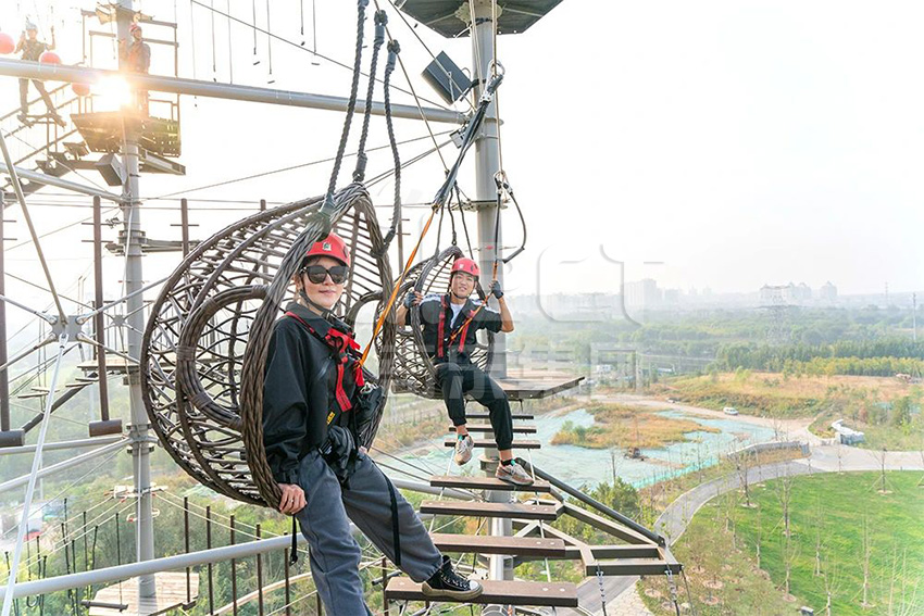 九月底,全亞洲最大的探險塔在北京溫榆河公園拔地而起,這座總高度29.8m,共設6層,能同時滿足兩百多位游客探險挑戰(zhàn)的探險塔,設備占地面積約1100平方米,開啟全新潮流生活方式,成為北京市民一種新的時尚戶外活動。