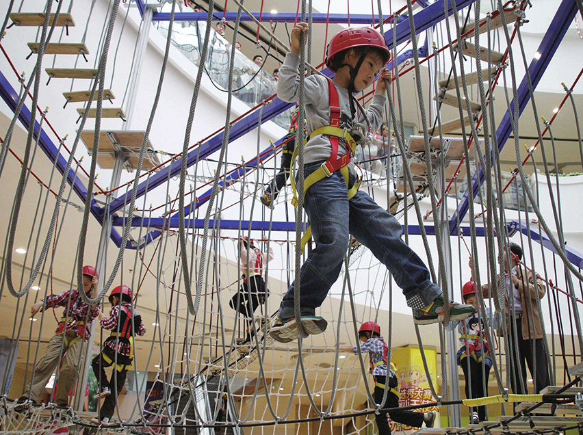 兒童拓展項目的設備功能以體能訓練為中心,孩子穿戴好拓展設備之后全身心投入拓展挑戰對于啟發自身的認知能力、意志力和交往活動有極大的促進作用。兒童拓展設備的挑戰性主要表現在對孩子心理身體素質的考驗上,整個拓展過程需要孩子不斷地極限挑戰、突破自我,挑戰成功能為孩子帶來巨大的自信心和克服困難的勇氣。