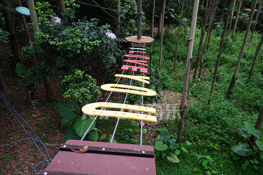 2. “勇者之路”挑戰線(核心體驗):這是項目的主體線路,充分利用了山林的坡度與樹木間距。線路中包含了長達百米的空中步道、離地數米高的樹間滑索、考驗平衡的緬甸橋以及需要團隊協作通過的旋轉攀爬網。游客在征服關卡的過程中,視野在樹林縫隙與開闊山谷間切換,體驗感極為豐富。